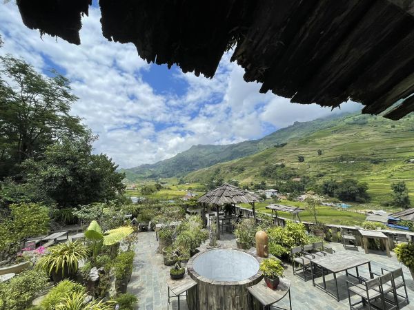 Phòng tắm được trang bị đầy đủ với vòi sen, đồ tắm miễn phí và máy sấy. Mỗi phòng đều có ban công riêng, tạo cơ hội ngắm nhìn ruộng bậc thang xanh mướt. Ngồi đây, thưởng thức một tách cà phê nóng, bạn sẽ ngập tràn trong khung cảnh hòa quyện giữa mây và núi.