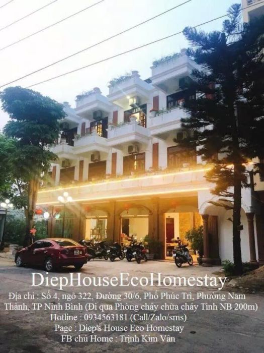Diep’s House Eco Homestay đặt tại số nhà 4, ngõ 322, đường 30/6, phố Phúc Trì, phường Nam Thành, TP Ninh Bình (cách Ga 700m, cách bến xe 1km, cách mặt đường QL 20m). Homestay không quá xa các điểm du lịch, cách Hang Múa khoảng 7km, cách Tràng An khoảng 5km, cách Tuyệt Tình Cốc khoảng 7km, cách Phố Cổ Hoa Lư khoảng 3km,…
