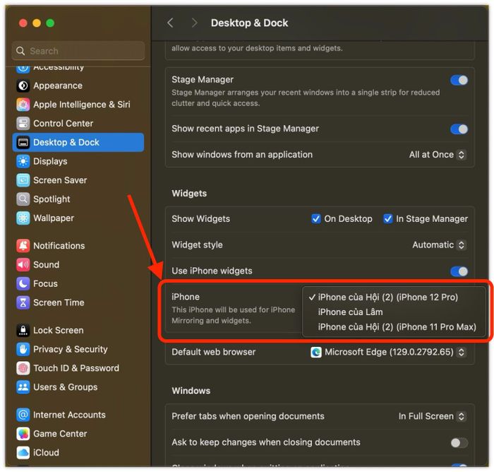 - Khi sử dụng nhiều mẫu iPhone khác nhau (tất cả đều chạy iOS 18), bạn cần điều chỉnh thiết bị sẽ kết nối với máy Mac trong phần cài đặt.