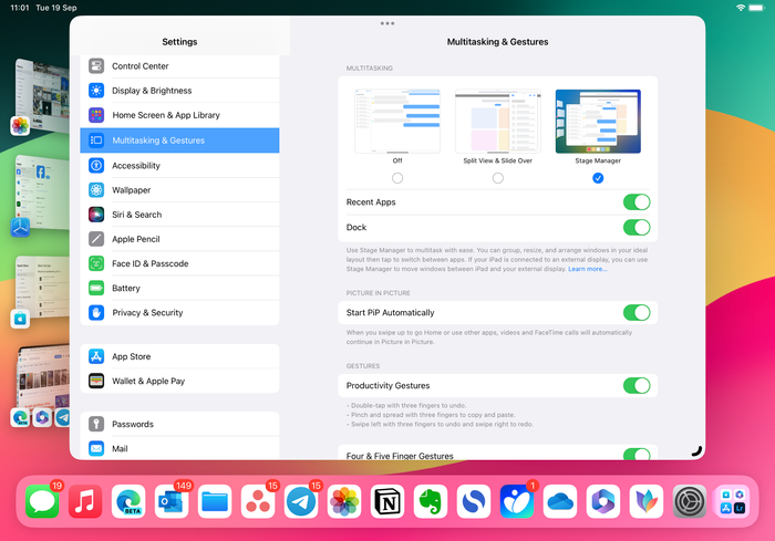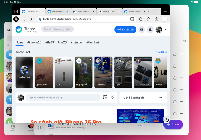 Oh, khi nói về việc cải thiện trải nghiệm trên iPadOS 17 so với phiên bản trước, tôi không thể quên Stage Manager. Stage Manager là ứng dụng mà tôi sử dụng nhiều nhất trên iPad và tôi thực sự thích nó. Dù tôi không dùng Stage Manager trên macOS nhưng trên iPadOS lại khác biệt. Màn hình của iPad nhỏ, và khả năng đa nhiệm của iPadOS cũng không giống như macOS, vì vậy Stage Manager thực sự hữu ích đối với tôi. Khả năng điều chỉnh kích thước cửa sổ linh hoạt hơn so với iPadOS 16 là điểm mà tôi đánh giá cao, mặc dù yêu cầu của tôi cũng tăng lên nhiều. Nếu đã có khả năng điều chỉnh kích thước cửa sổ một cách linh hoạt, tôi nghĩ nên hỗ trợ nhiều ứng dụng hơn, resize ở mọi kích thước cửa sổ, và hỗ trợ kéo thả giữa các cửa sổ.