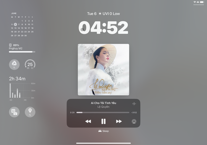 Màn hình khoá với widget trên iPad của tôi dường như đẹp hơn so với iPhone, tôi không biết là do lí do gì, có lẽ là do màn hình của iPad lớn hơn phải không?Ứng dụng Sức khỏe có sẵn trên iPadOS nhưng Apple Watch vẫn chưa thể kết nối với iPad