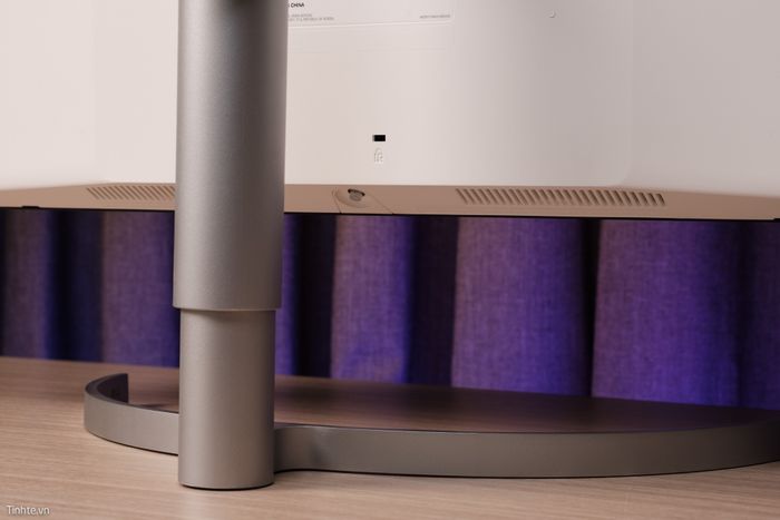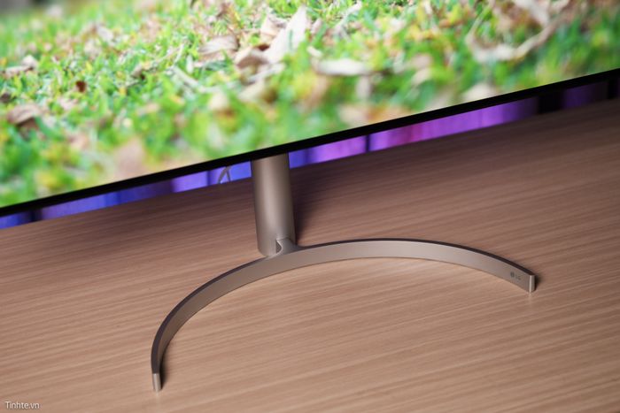 Chân đế của màn hình UltraFine vẫn giữ thiết kế đặc trưng với phần nửa vòng tròn, tạo nên sự ổn định và chắc chắn cho màn hình. Dù được làm từ nhựa nhưng chân trụ không bị rung lắc khi di chuyển màn hình lên xuống.