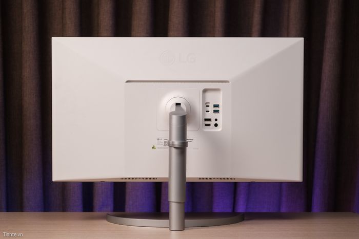 Mặt sau của màn hình được làm từ nhựa màu trắng truyền thống của LG, đi kèm với các cổng kết nối như 2 cổng USB-C Thunderbolt 3 hỗ trợ Daisy chain 4K, cổng DisplayPort (1.4), HDMI (2.0), 2 cổng USB-A, và jack tai nghe 3.5mm.
