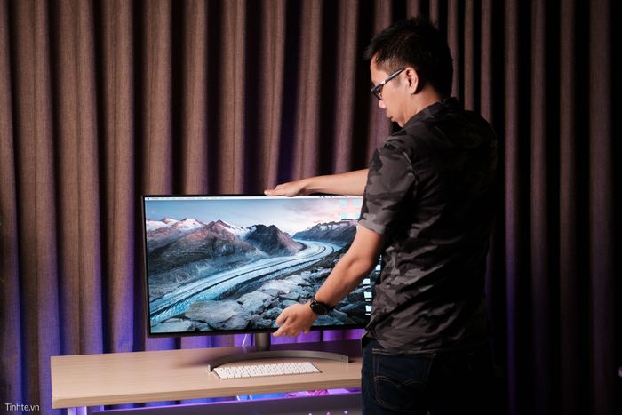 Màn hình LG UltraFine có kích thước đường chéo chính xác là 31.5 inch, độ phân giải 4K UHD (3840 x 2160) với công nghệ tấm nền Nano IPS. Công nghệ này được phát triển từ tấm nền mini LED, với mỗi mini LED tích hợp thêm các hạt nano giúp hấp thụ bước sóng thừa phát ra từ bóng LED, từ đó cải thiện khả năng tái tạo màu sắc trên màn hình.