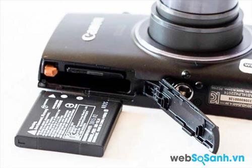 Cạnh đáy là hốc pin và khe thẻ nhớ, cùng ren cắm tripod chắc chắn, tạo nên nền tảng ổn định cho máy ảnh.