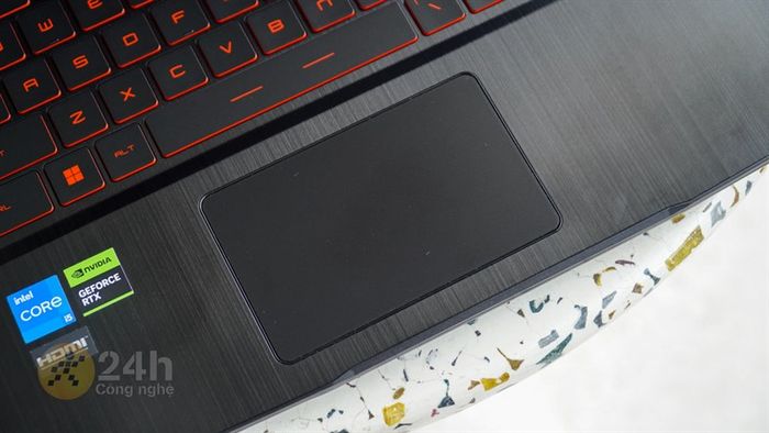 Bàn rê chuột trên MSI GF63 Thin 12VE có kích thước vừa phải, đem lại trải nghiệm vuốt mượt với độ chính xác và phản hồi nhanh. Phần nghỉ tay với kích thước hợp lý, chất liệu kim loại tạo cảm giác chắc chắn và mát tay.