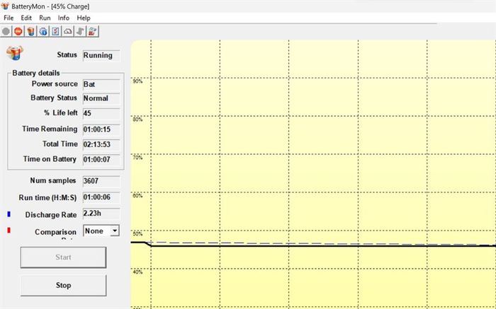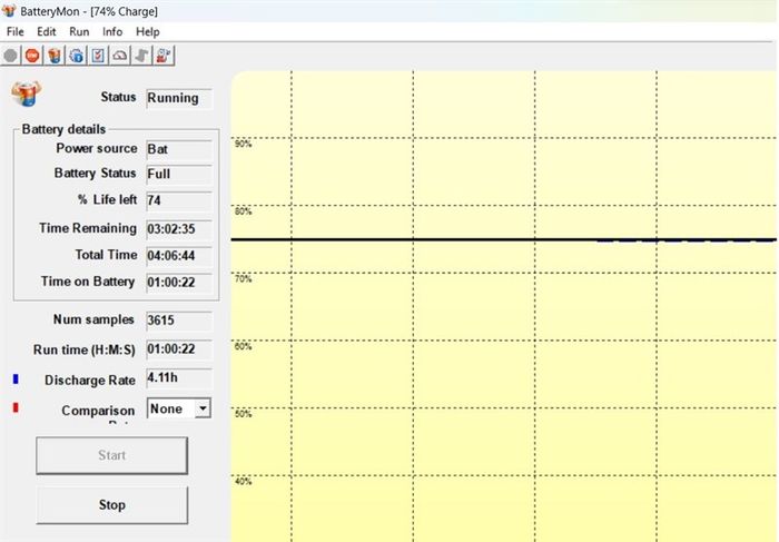 Đã sử dụng BatteryMon để kiểm tra thời lượng pin trong 2 trường hợp sử dụng khác nhau. Kết quả như sau: