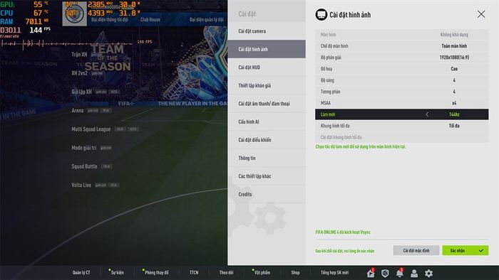 MSI GF63 Thin 12VE ấn tượng với hiệu suất khi chơi FIFA Online 4, đạt tốc độ khoảng 140 FPS với sự ổn định cao. Đồ họa game được tái tạo tốt, chi tiết rõ nét, tạo ra trải nghiệm chơi game mượt mà.