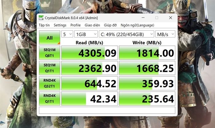 Kết quả đo tốc độ đọc/ghi bộ nhớ trên MSI GF63 Thin 12VE ấn tượng. Tốc độ này thích hợp cho công việc xử lý dữ liệu lớn, tiết kiệm thời gian di chuyển và làm việc với tệp. Đồng thời, giúp máy khởi động ứng dụng nhanh chóng, tối ưu hóa thời gian làm việc.