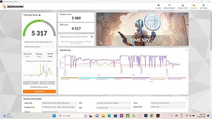 - Kết quả đánh giá 3Dmark: 5.317 điểm.