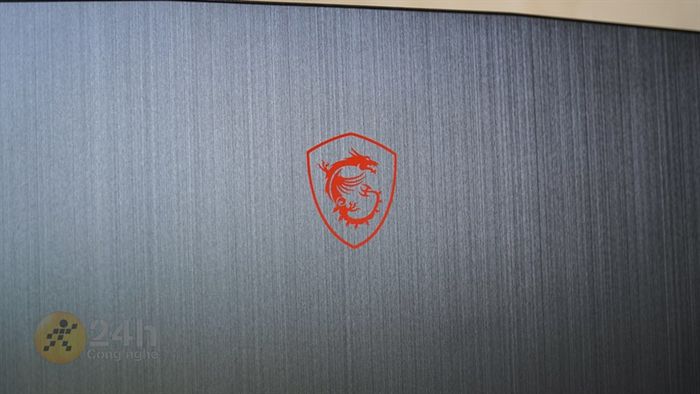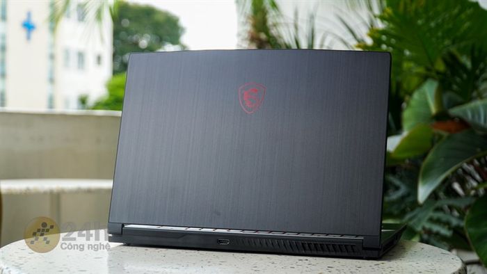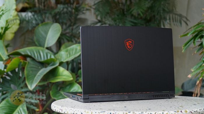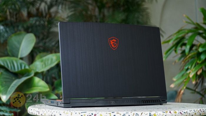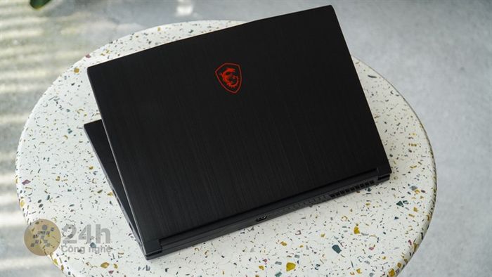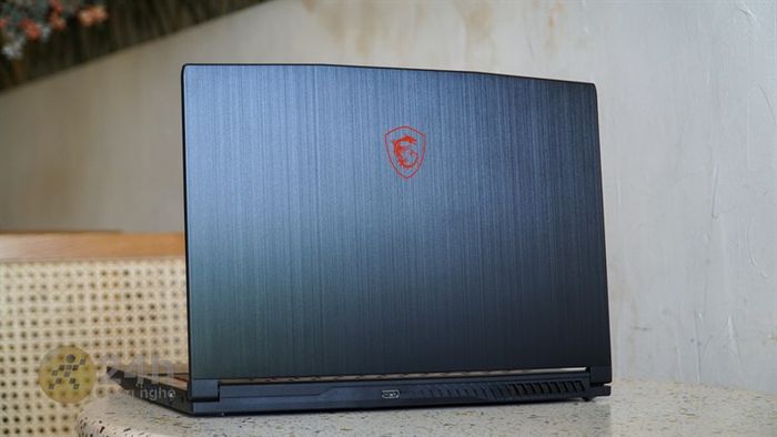 Nắp lưng kim loại của MSI GF63 Thin 12VE mang lại cảm giác mát tay, chắc chắn và đẳng cấp với hoa văn xước phay tinh tế, kết hợp với logo MSI màu đỏ ấn tượng.