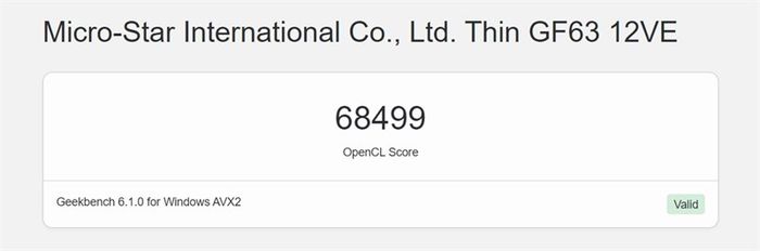 - Hiệu suất tính toán GPU: 68.499 điểm.