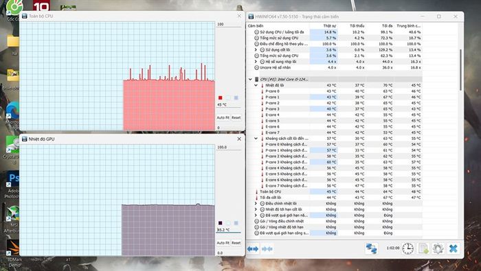 Bên cạnh đó, dùng phần mềm HWiNFO64 để đánh giá khả năng tản nhiệt của MSI GF63 Thin 12VE.