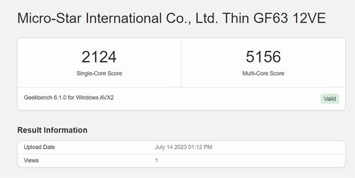Để có cái nhìn rõ ràng về hiệu suất của MSI GF63 Thin 12VE, mình sẽ sử dụng các phần mềm đánh giá như Geekbench 6, Cinebench R23, 3DMark và PCMark 10. Dưới đây là kết quả mà mình thu được: