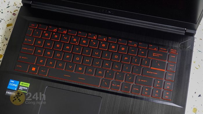 MSI GF63 Thin 12VE sử dụng bàn phím TKL (Tenkeyless) mặc dù có màn hình lớn. Kích thước và khoảng cách giữa các phím được tối ưu hóa, với các phím lớn và cả các phím mũi tên.