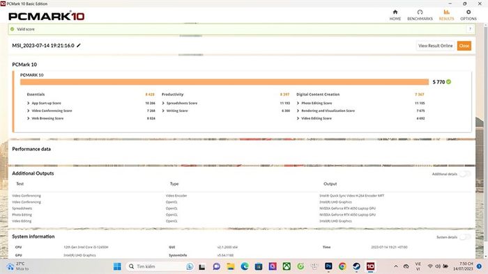 - Kết quả đánh giá PCMark 10: 5.770 điểm.