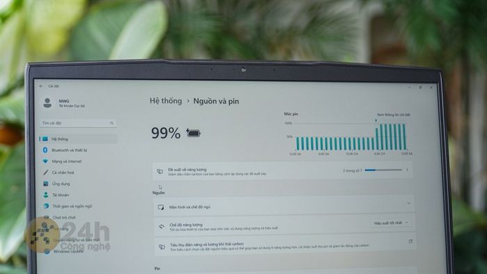 Sau bài kiểm tra, mình đánh giá rằng thời lượng pin của MSI GF63 Thin 12VE đặc biệt ấn tượng cho một laptop gaming sử dụng viên pin 52.4 Wh. Theo ý kiến của mình, MSI đã tối ưu hóa hiệu quả cho thiết bị này. Thậm chí trong bài kiểm tra chơi game nặng, máy đã đạt được thời lượng sử dụng hơn 2 tiếng, điều này làm nổi bật hiệu suất đáng khen.