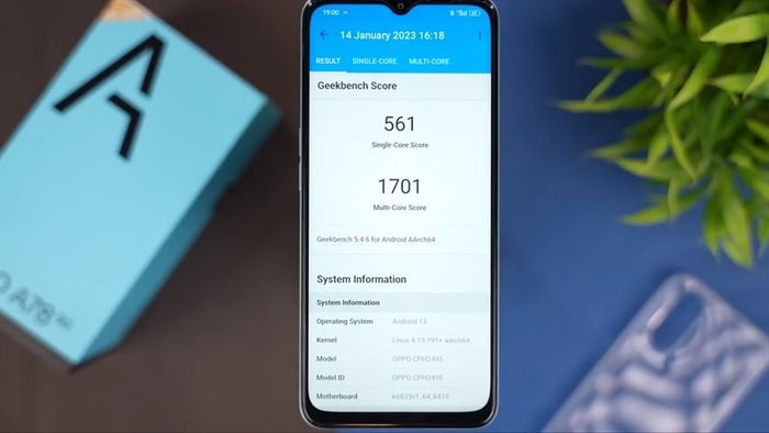 OPPO A78 5G có 561 điểm đơn nhân và 1.701 điểm đa nhân trên GeekBench 5.