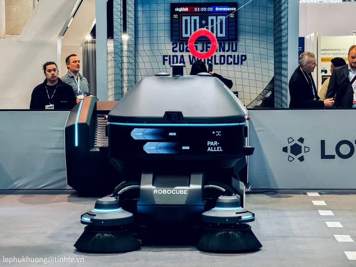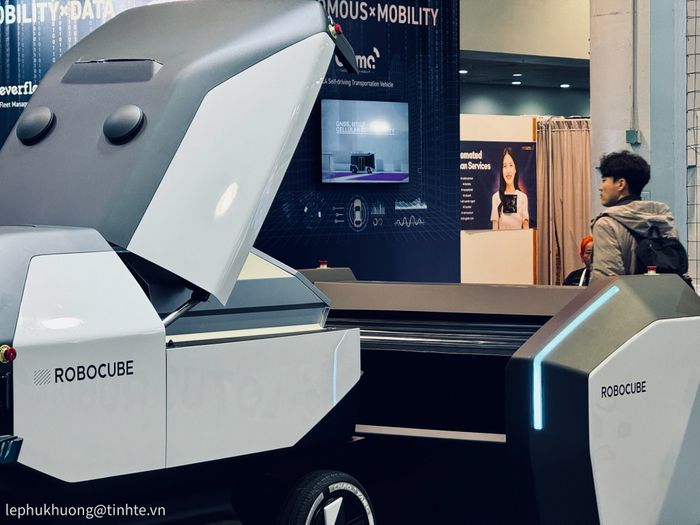 Đây là trạm sạc của Robocube. Có vẻ như chiếc xe điện này sử dụng cơ chế sạc không dây. Trong buổi demo, họ nói rằng chỉ cần đậu vào khu vực này là xe sẽ được sạc.