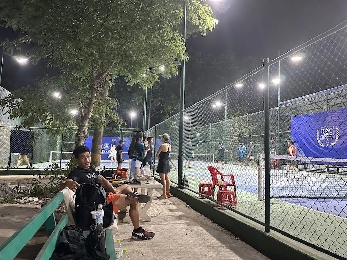 Sân Pickleball USC Bình Trưng Đông gồm 3 sân ngoài trời, được xây dựng hiện đại, sạch sẽ với không gian rộng rãi và thoáng mát. Hệ thống đèn LED tiên tiến được lắp đặt ở độ cao hợp lý, cung cấp ánh sáng đầy đủ cho các trận đấu diễn ra cả ngày lẫn đêm. Khu vực nghỉ ngơi với ghế ngồi tiện nghi mang lại sự thoải mái cho người chơi sau những giờ hoạt động thể thao.