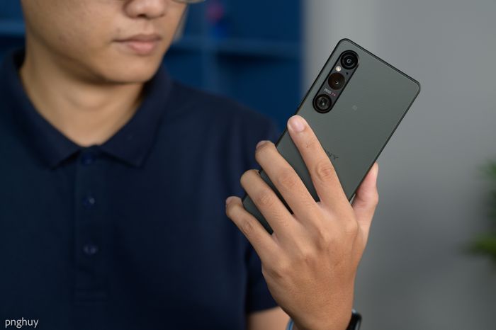 Ban đầu tôi nghĩ điều này sẽ giúp tôi cầm chiếc điện thoại này ổn định hơn, có độ bám tốt hơn, nhưng thực tế lại không có nhiều sự khác biệt. Tôi vẫn cảm thấy trơn trượt, không giống với cách tôi cầm Sony Xperia 5 IV vì máy này có màn hình nhỏ hơn so với Xperia 1 V.