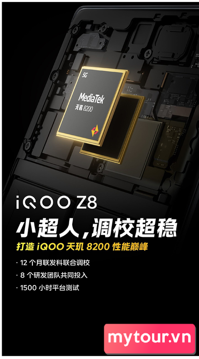 Dòng iQOO Z, chủ yếu dành cho người dùng ngân sách hạn hẹp, tiếp tục mang lại hiệu suất ấn tượng. iQOO Z8 sẽ sử dụng MediaTek Dimensity 8200, bộ xử lý chơi game tầm trung mạnh mẽ. Số điểm AnTuTu Benchmark vượt 980,000, chứng minh sức mạnh đỉnh cao.