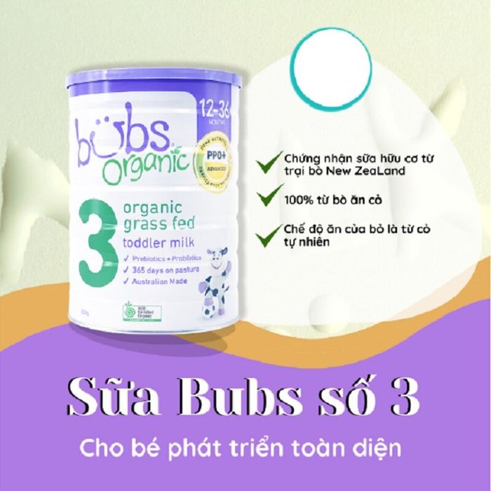 Sữa Bubs Organic số 3 hỗ trợ hệ tiêu hoá cho bé