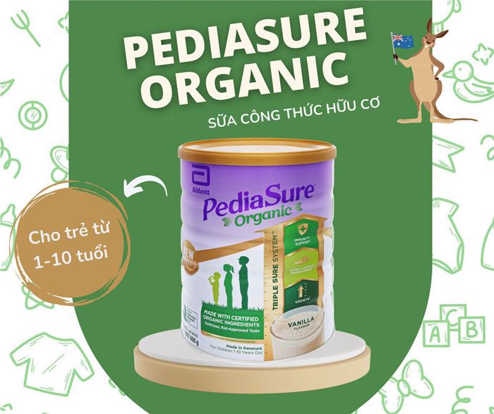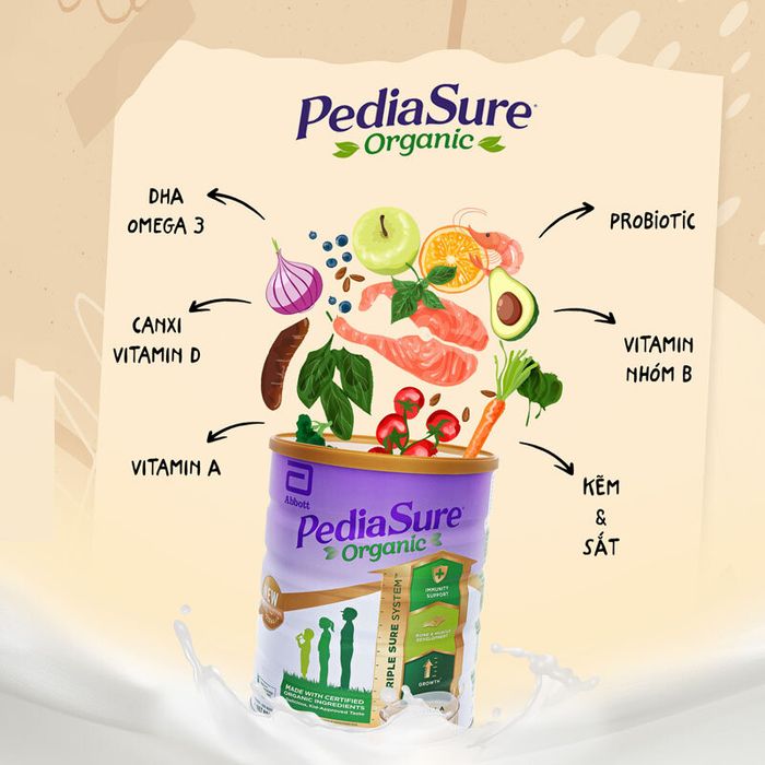 Sữa Pediasure Organic được NASAA – Hiệp hội Quốc gia về Nông nghiệp bền vững Úc được cấp chứng nhận hữu cơ Úc. Sản phẩm cung cấp 27 loại vitamin và khoáng chất, kích thích vị giác, giúp trẻ ăn ngon, được các chuyên gia và mẹ bỉm sữa Việt đánh giá là “dinh dưỡng vàng” cho trẻ từ 1-10 tuổi.