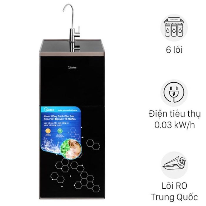 Midea MWP-S0620MR với thiết kế sang trọng, vỏ máy bền bỉ, gam màu hiện đại và cấu trúc vững chắc. Máy cung cấp nguồn nước lọc trong sạch, tinh khiết, có lợi cho sức khỏe nhờ hệ thống lọc RO chất lượng với 6 lõi.