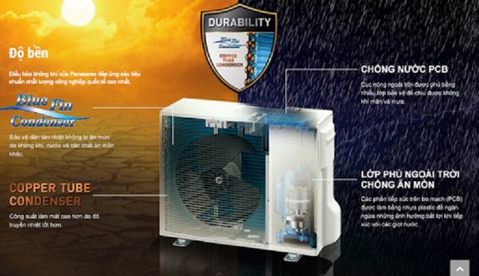 Nếu nói đến máy lạnh siêu bền, sản phẩm của Panasonic là không thể bỏ qua. Dàn lạnh của Panasonic CU/CS-U9ZKH-8 9000 BTU có lớp vỏ chắc chắn với viền mạ bạc Crom chống chịu tốt trước va đập. Dàn tản nhiệt phủ lớp Bluefin chống ăn mòn. Hệ thống bình ngưng Copper Tube condenser bằng ống đồng mang lại khả năng truyền nhiệt tốt và ít bị ăn mòn hơn so với nhôm.