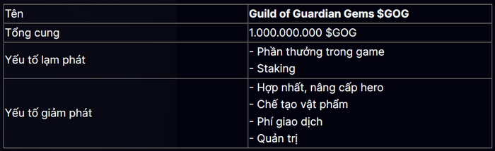 Bảng 2: Các yếu tố lạm giảm và giảm phát của token GOG