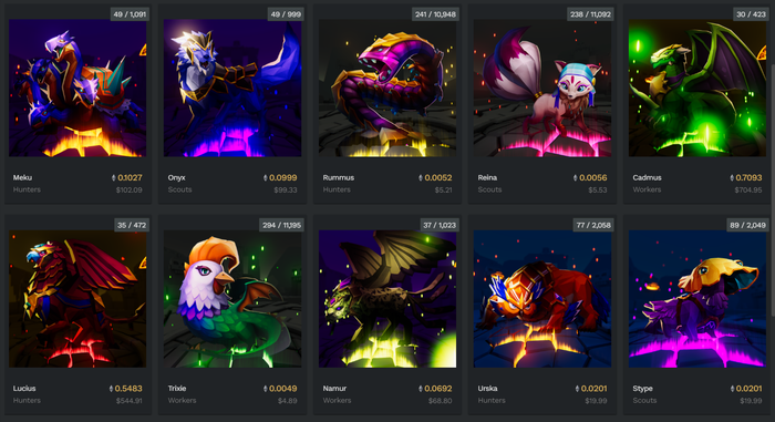 Ban đầu người chơi có thể mua thú cưng trong thời gian presale, nhưng người chơi vẫn có thể mua bán trên thị trường. Giá sàn hiện tại của một thú cưng là 0,005 ETH. Tổng khối lượng giao dịch là 756 ETH và đã có hơn 6 nghìn người sở hữu những sinh vật này.