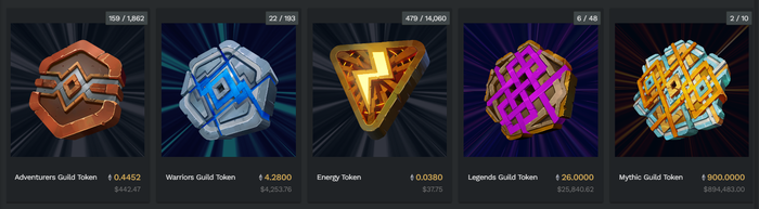 Hình 4: Bộ sưu tập thú cưng của Guild of Guardians trên thị trườngGuild of Guardians sử dụng hệ thống năng lượng được phục hồi theo thời gian và tiêu hao dần khi nào người chơi bước vào dungeon. Các anh hùng sẽ bị yếu đi nếu tham gia quá nhiều dungeon trong một ngày. Điều này sẽ khiến chỉ số của anh hùng bị giảm và đòi hỏi người chơi phải tăng cường thêm năng lượng cho anh hùng.