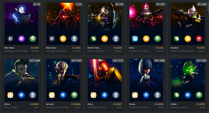 Hơn nữa, người chơi cũng có thể sở hữu anh hùng dưới dạng NFT. Mặc dù đợt mở bán anh hùng genesis đã kết thúc, nhưng người chơi vẫn có thể mua anh hùng trên marketplace của ImmutableX và TokenTrove. Hiện tại, giá sàn của một anh hùng GOG là 0,004 ETH. Tổng khối lượng giao dịch của anh hùng GOG là 2,8 nghìn ETH với hơn 11,5 nghìn người sở hữu.