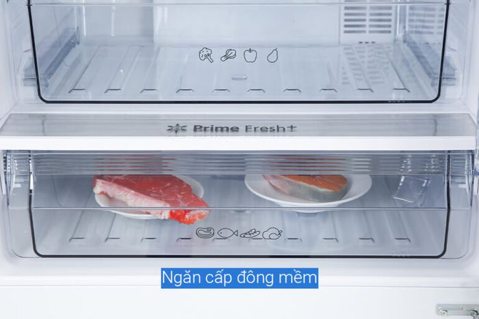 – Hệ thống cấp đông mềm Prime Fresh+ thế hệ mới với nhiệt độ -3 độ C giữ cho thực phẩm tươi ngon, không cần rã đông suốt 7 ngày.