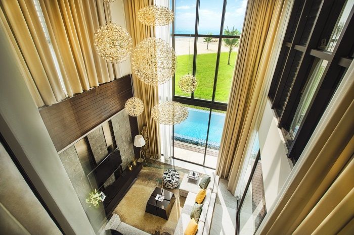 Thiết kế hiện đại và sang trọng của villa, đầy đủ tiện nghi như tivi, wifi tốc độ cao, bồn tắm riêng, không gian phòng khách và bếp đẳng cấp. Chúng tôi rất ấn tượng với phong cách thiết kế tối giản và gam màu tươi sáng của Vinpearl Resort & Golf Nam Hội An, mang lại cảm giác thoải mái và thư thái.