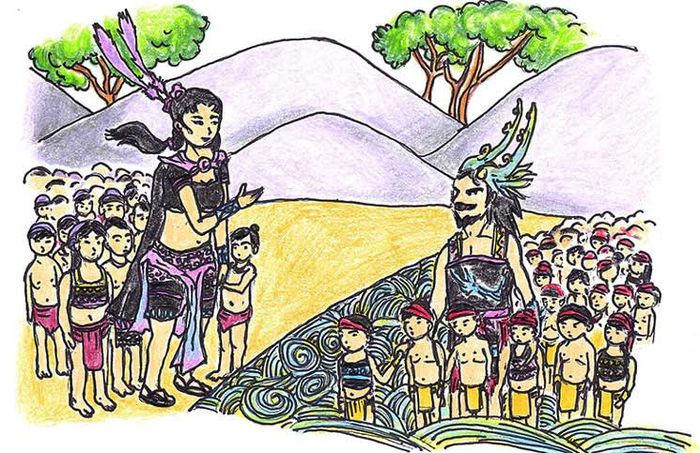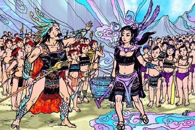 Chúng ta có cơ hội đi ngược lại thời gian, tìm hiểu về nguồn gốc của mình với sự tò mò và tự hào vô hạn. Trong câu chuyện, sự kết hợp thiêng liêng giữa núi và biển, cha Lạc Long Quân là con trai của thần Long Nữ ở Đông Hải (biển Đông), còn Âu Cơ thuộc dòng họ Thần Nông, sống trên vùng núi cao phương Bắc. Họ có tài năng phi thường và vẻ đẹp riêng, hợp nhau, với Lạc Long Quân là hình tượng thân hình Rồng, sống trên cạn và dưới nước, sức khỏe vô song, có nhiều phép lạ, trấn áp yêu quái để bảo vệ dân lành, còn Âu Cơ là một nhân vật nữ thương người, dạy dỗ dân cách trồng trọt, chăn nuôi, ăn ở.