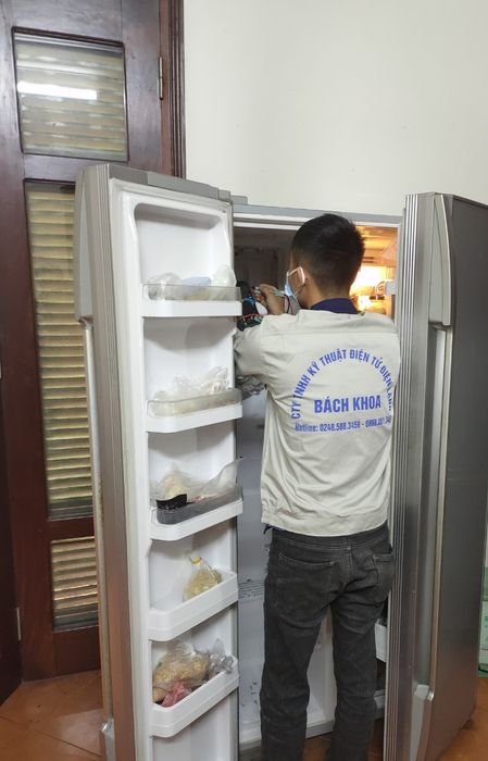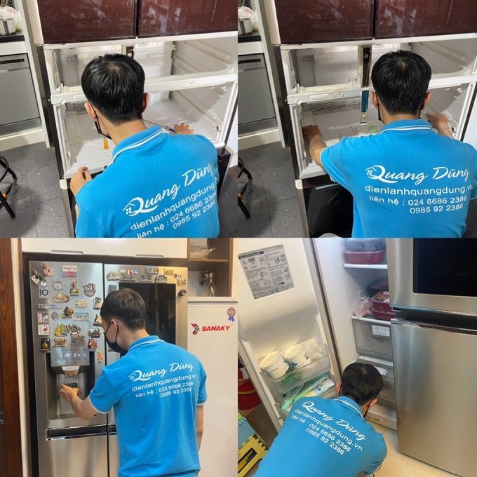 - Kỹ thuật viên thực hiện sửa chữa tủ lạnh