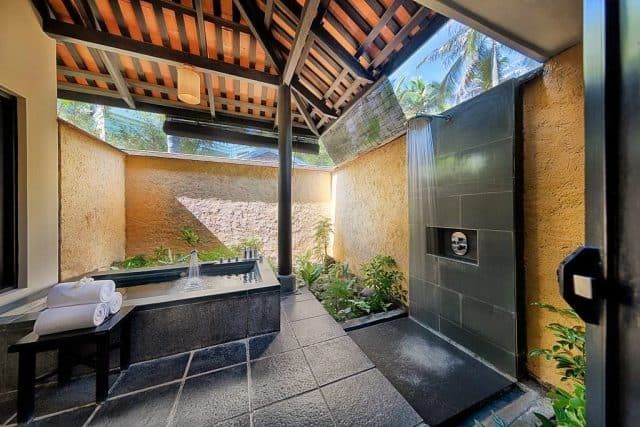 Phòng tắm sang trọng với bồn tắm riêng, vòi sen, máy sấy… (Ảnh: Resort Cham Villas)