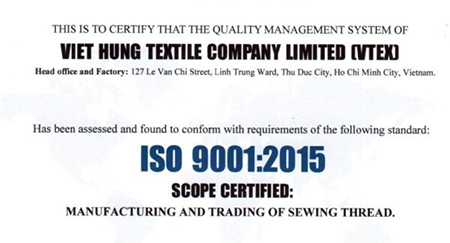 Công Ty TNHH Vải Sợi Việt Hưng, được thành lập vào năm 2019, là một doanh nghiệp hàng đầu trong ngành sản xuất sợi với nền tảng chuỗi cung ứng khép kín. Chúng tôi chuyên cung cấp các loại sợi mộc chỉ may polyester, với chi số từ 16 đến 80 Ne. Thế mạnh của Việt Hưng bao gồm: ➥ Chứng nhận ISO 9001:2015 và OEKO-TEX ➥ Năng lực sản xuất 220 tấn/tháng (2020), tăng lên 300 tấn/tháng (2021) ➥ Ứng dụng công nghệ tiên tiến, trang thiết bị tự động hóa cao, và sử dụng nguồn năng lượng thân thiện với môi trường. Hệ thống năng lượng mặt trời của chúng tôi đóng góp gần 40% sản lượng điện tiêu thụ toàn nhà máy. ➥ Quy trình vệ sinh công nghiệp tại Việt Hưng được thực hiện nghiêm ngặt để đảm bảo sản phẩm đạt chất lượng cao và tạo môi trường làm việc xanh - sạch - đẹp. ➥ Đội ngũ cán bộ giàu kinh nghiệm và thâm niên trong ngành, luôn sẵn sàng phát triển các sản phẩm mới như sợi Polypoly Core, Nylon, Filament,.. Chúng tôi cung cấp sản phẩm và dịch vụ với giá tốt và uy tín, lấy chữ tín làm nền tảng cho mọi hoạt động. Địa chỉ của chúng tôi là 127 Lê Văn Chí, Phường Linh Trung, Thành Phố Thủ Đức, TP. Hồ Chí Minh, Việt Nam. Với mục tiêu phục vụ khách hàng toàn quốc và quốc tế, nhân viên của Việt Hưng chính là niềm tự hào của công ty, và chúng tôi cam kết đổi mới công nghệ liên tục để đáp ứng nhu cầu thị trường.