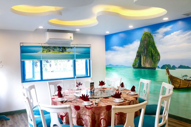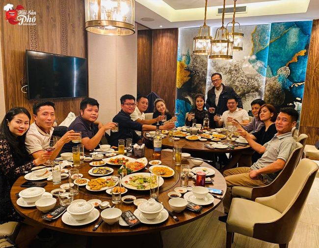 Thế Giới Hải Sản Trần Hưng Đạo, một địa điểm nổi tiếng ở Hồ Gươm, sở hữu không gian rộng rãi, trẻ trung và tối tân, phù hợp cho các buổi tiệc tiếp khách, gia đình,... với bố cục màu sắc tươi sáng, hòa quyện dưới ánh đèn ấm áp.
