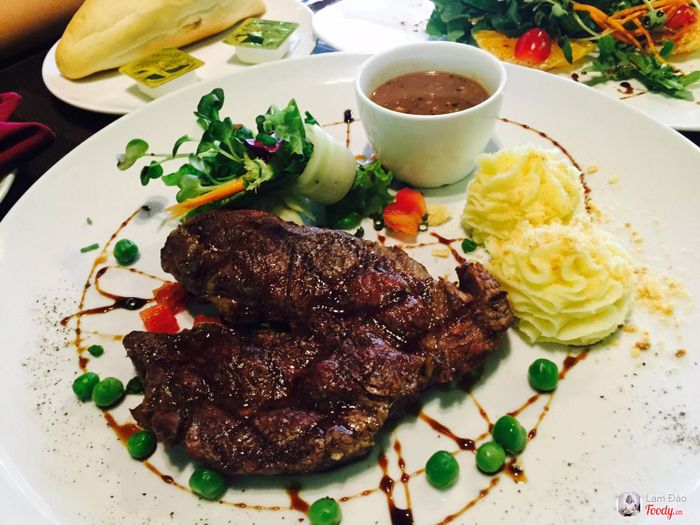 Thực đơn đa dạng của nhà hàng thu hút từ món khai vị, món chính đến món tráng miệng. Những món ngon như steak, thịt cừu hay các món cá được chế biến theo phong cách Pháp.