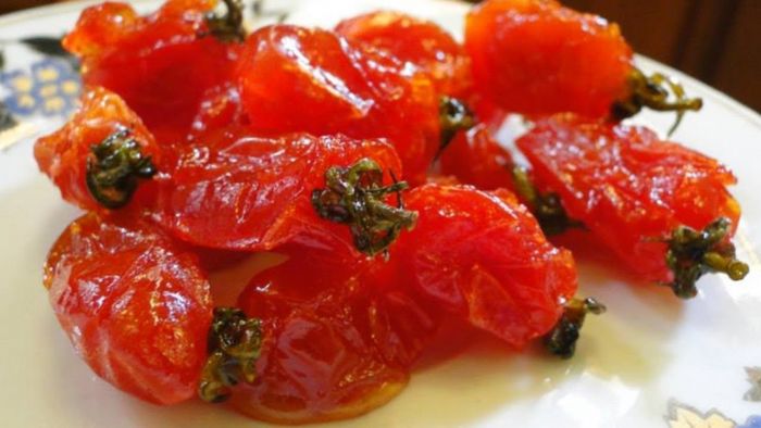 - Bước 6: Thực hiện đảo đều và nhẹ tay đến khi kết tinh đường trên cà chua thì tắt bếp và để nguội.