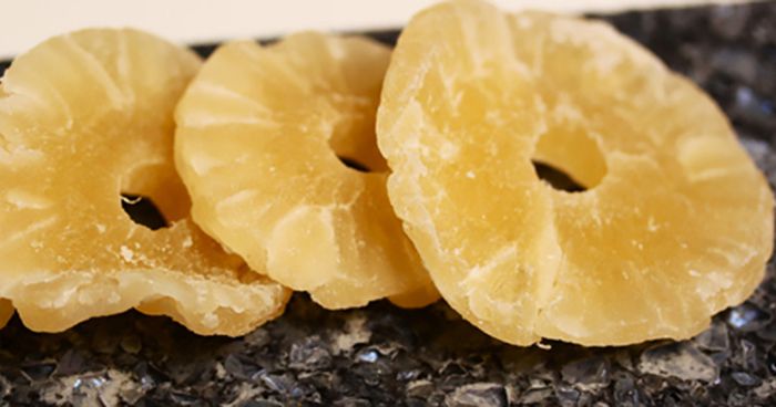- Bước 2: Phơi thơm và ngâm thơm với đường: Vớt thơm ra, rửa sạch và phơi nắng 3 giờ. Ngâm thơm với 150 gr đường, ướp từ 3-4 giờ.