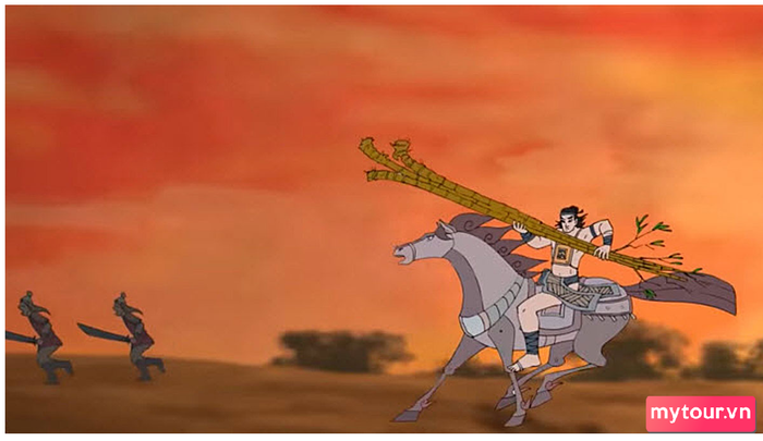 Thánh Gióng, một cậu bé nông thôn, ban đầu không biết nói và đi như trẻ em bình thường. Khi nghe tin nước nhà bị xâm lược, cậu tự nguyện tham gia trận chiến.