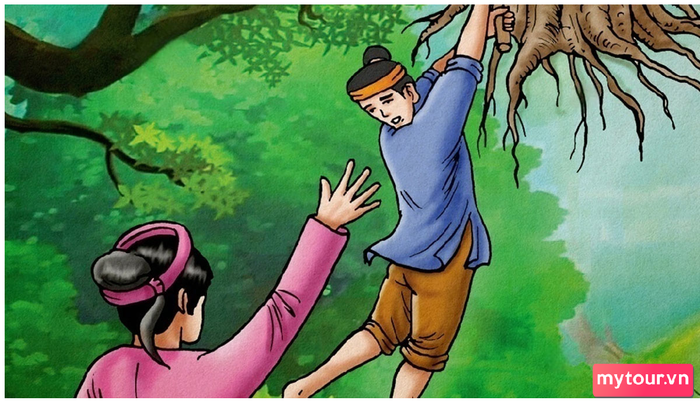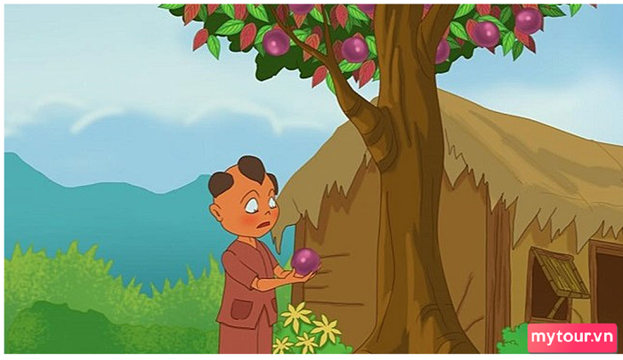 Nhờ sự chăm chỉ và tài trí thông minh, Mai An Tiêm trồng vườn quả ngọt từ hạt đen rơi từ trên trời. Anh đổi quả này lấy lương thực lo cho gia đình.