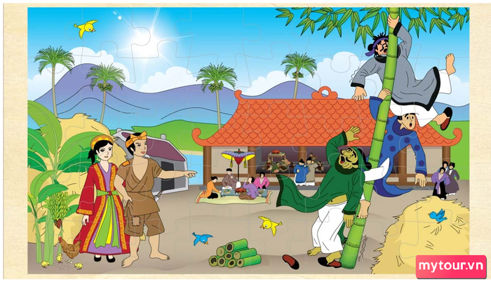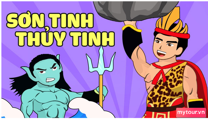 Vua Hùng thứ 18 muốn tìm chồng cho Mị Nương, yêu cầu những thứ hiếm như voi 9 ngà, gà 9 cựa,... Sơn Tinh nhanh nhẹn đem sớm và lấy được Mị Nương. Thủy Tinh tức giận, đánh Sơn Tinh nhưng sau cùng phải nhận thua.