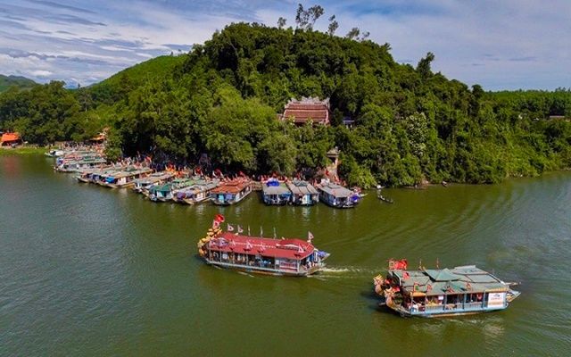 Một điểm du lịch ấn tượng tại Huế chính là điện Hòn Chén, thu hút rất nhiều du khách với cảnh quan độc đáo và không gian linh thiêng.