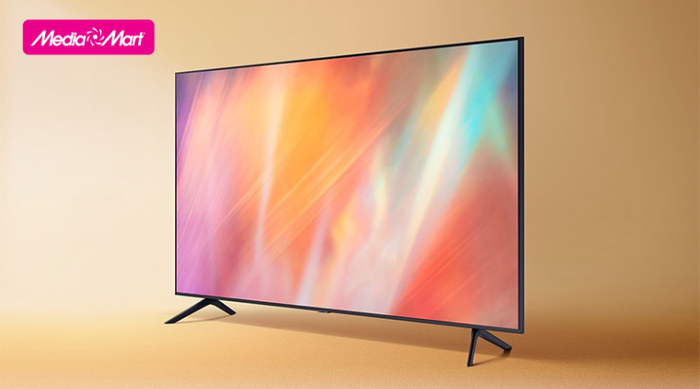 Smart Tivi Samsung 4K 55 inch 55AU7700 UHD là chiếc tivi nổi bật trong top bán chạy dịp Tết Nguyên Đán 2023 với thiết kế không viền, màn hình phẳng sang trọng, và công nghệ Crystal 4K.