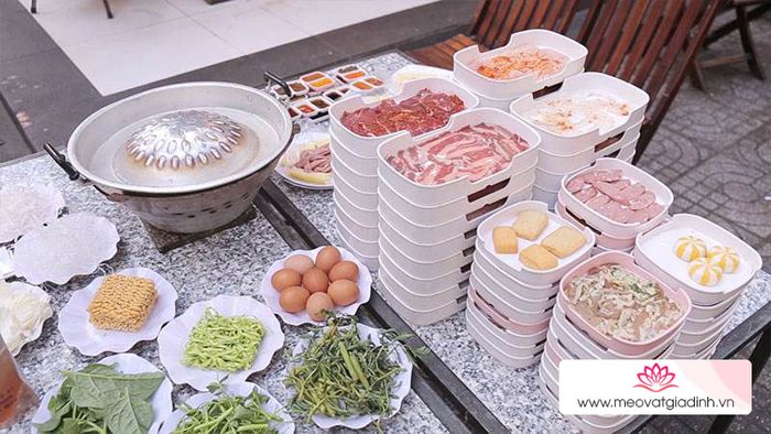 Đa dạng món ăn như: Thịt bò, heo, tôm, mực, cá,…Tạo cơ hội cho thực khách thoải mái lựa chọn món ưa thích.
